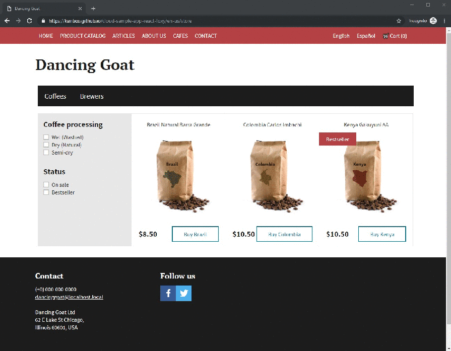 If you want to add e-commerce features to your existing site, it is sometimes a good idea to keep your current content and product data apart. It would be awesome if you could achieve it just by adding the widget or code snippet to your current website, wouldn’t it? An e-commerce platform called Ecwid comes with such functionality. You just have to create product catalogs and fill all necessary data about payments and orders on their site and render the widget. This approach demonstrates the clear separation of concerns — your marketing data is managed in CMS, while goods, orders, and all necessary data and processes related to e-shop are handled by e-commerce platform. Eager to see it in action? Try to buy some brewers for your favorite coffee from example e-shop or just skim through the code.